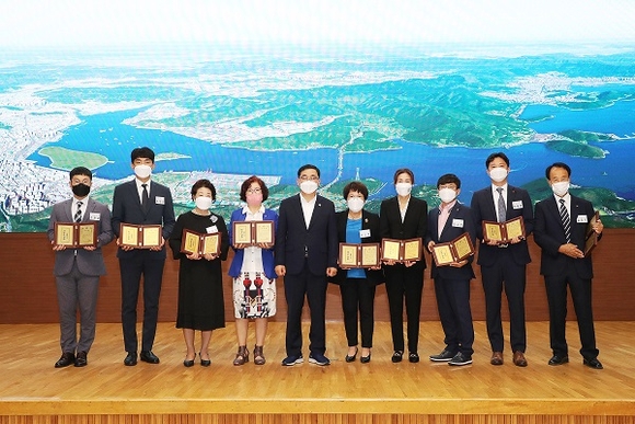 수여식은 지난 3분기 동안 지역사회와 시정발전을 위해 공헌한 시민 100여 명을 선정, 코로나19 방역수칙 준수를 위해 행사 규모를 40여 명으로 축소하고, 표창 대상자 간담회를 생략, 표창패만을 전수하는 방식으로 진행했다.