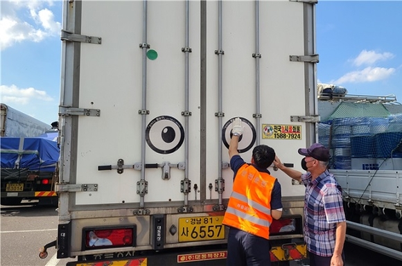 가을 행락철 경남권 고속도로 통행량이 급증하는 시기에 화물차 후미에 반사지를 부착하고 안전운전 수칙 홍보를 통해 교통사고를 사전에 방지하겠다는 취지다.