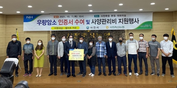 경남 사천시와 사천축산업협동조합은 지난 7일 사천축협 본점 대회의실에서 우량암소 육성사업의 일환으로 우량암소(엘리트카우) 인증서 및 인증패 수여식을 가졌다.