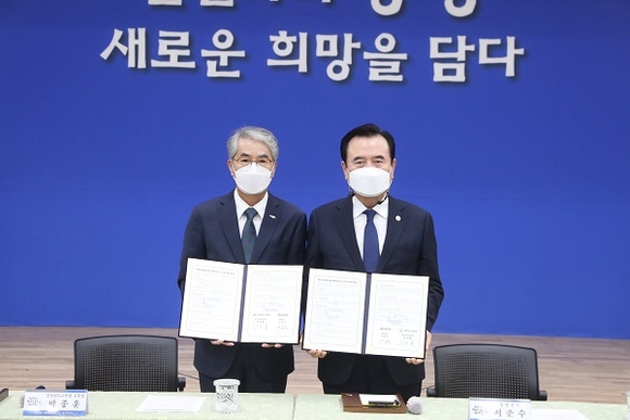 경남도교육청과 함양군이 19일 오후 함양군청 대회의실에서 2022년 행복교육지구 추진을 위한 업무협약식을 가졌다.