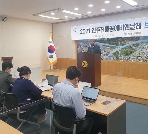 진주문화관광재단은 20일 시청 브리핑룸에서 전날 조규일 시장의 주재로 개최된 보고회의 내용을 바탕으로 '진주전통공예비엔날레' 기자 간담회를 진행했다.