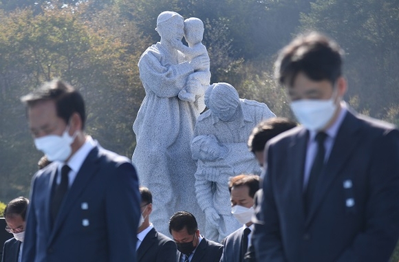 사회적 거리두기 3단계 지속으로 행사에 참석하지 못한 문재인대통령은 조화를 보내왔고, 김부겸 국무총리와 전해철 행안부 장관은 추모영상을 통해 유족들에게 위로의 메시지를 전했다.