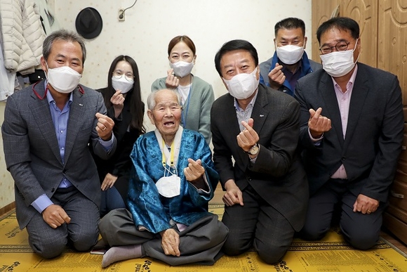 첫 장수축하금을 받은 유판돌 어르신은 “100세 넘게 사는 것도 개인적으로 큰 복이라 생각하는데, 이렇게 주변 사람들이 챙겨줘서 감사하다”며 고마운 마음을 전했다.