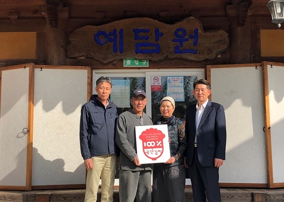 인증업체로 지정되면 국산재료 100% 김치 인증 현판이 제공된다.
