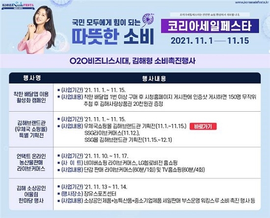 경남 김해시는 11월 위드 코로나 시대의 출발을 코리아세일페스타와 연계한 김해형 소비촉진행사로 특별하게 시작한다고 28일 밝혔다.