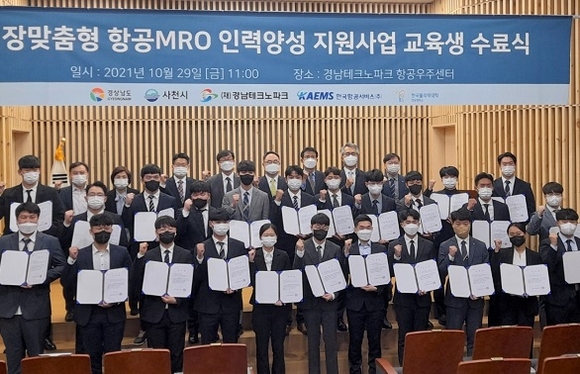 경남 사천시는 경남테크노파크(경남TP) 항공우주센터에서 현장맞춤형 항공MRO 전문인력 양성사업 교육생 수료식을 가졌다고 29일 밝혔다.