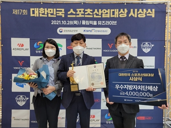 올해 우수 지방자치단체 부문은 스포츠관광, 프로스포츠 진흥 등 지역 스포츠산업 활성화에 기여한 공로로 창원시가 수상했다.