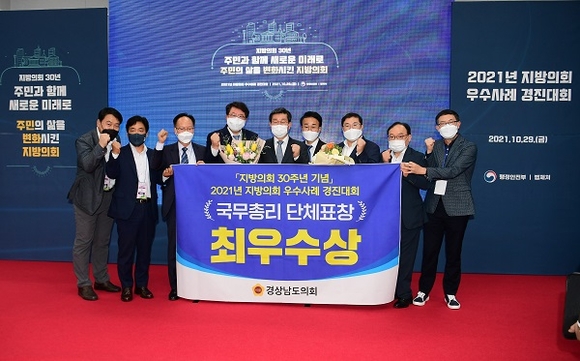 경남도의회는 지난 29일 행정안전부 주관으로 울산전시컨벤션센터에서 열린 2021년 지방의회 우수사례 경진대회에서 국무총리 표창 '최우수상'을 수상했다고 2일 밝혔다.
