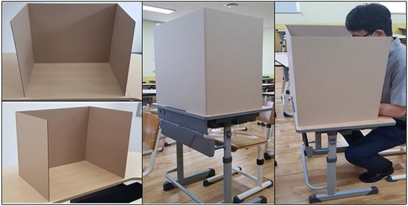 시험장은 지난해와 같은 책상 칸막이를 설치하지는 않는다. 대신에 점심시간이 마스크를 벗는 시간인 점을 감안해 수험생 책상용 종이칸막이를 설치한다. 시험실당 수험생 인원수는 지난해와 같이 24명이다.