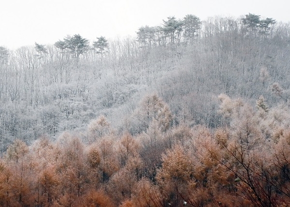 10일 경남 함양군 백전면 백운산에서 첫 눈이 내려 하얀 풍경을 연출하고 있다. (사진=함양군 제공)