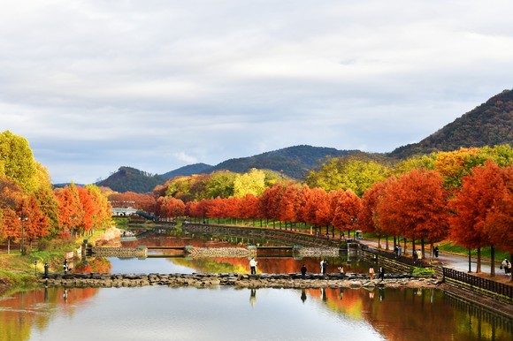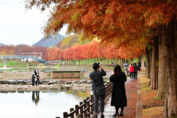 천연기념물 제366호 담양 관방제림은 조선시대 홍수 피해를 막아 백성들 살림을 살피고자 조성했던 제방숲으로, 이 숲길에는 푸조나무, 팽나무 등 수백 년을 살아온 나무들이 고즈넉한 가을의 풍경을 만들어낸다.