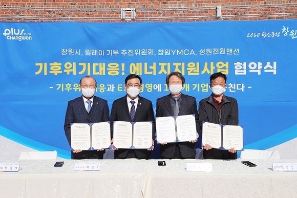 주요 협약 내용은 ▲창원시는 기후변화 취약계층 발굴 및 행정지원 ▲릴레이 기부 추진위원회는 100만원 기부 참여기업 100개사 모집(내년 6월까지) 및 에너지 지원사업 추진으로 모범적인 ESG경영 실천 ▲창원YMCA는 사업총괄 진행 및 참여기업 기념 및 홍보 ▲성원전원맨션 주민은 기후위기인식 및 에너지절약 등 탄소중립 실천 동참이다.