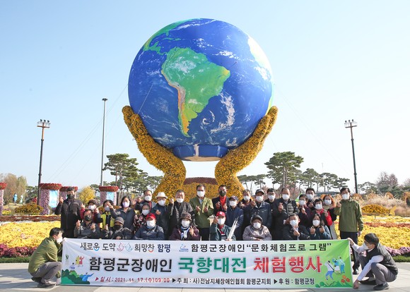 함평군지체장애인협회(회장 박종관)는 지난 17일 지체장애인과 봉사자들이 함께 ‘2021 대한민국 국향대전’을 관람하며 화합과 소통을 위한 문화체험 행사를 실시했다고 18일 밝혔다.