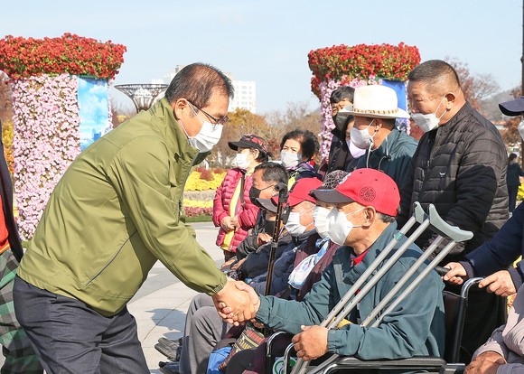 평소 외부활동이 어려운 지체장애인들은 이번 문화체험을 통해 다채로운 국화 조형물과 분재작품을 감상하는 등 코로나19로 지친 몸과 마음을 위로하는 시간을 가졌다.