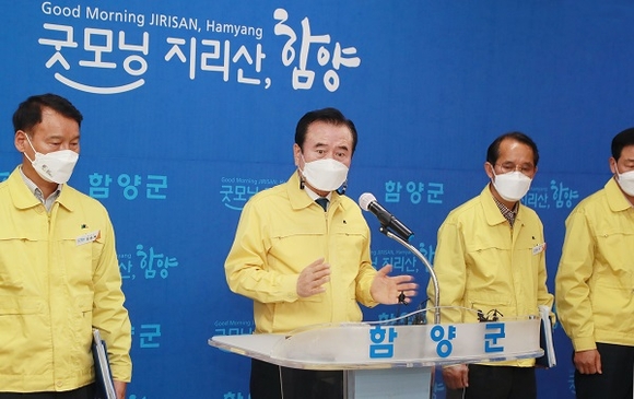 서춘수 함양군수가 지역내 코로나 확산에 따른 긴급 기자회견을 열고 적극적인 방역 동참을 호소하는 등 군민 건강 챙기기에 나섰다.