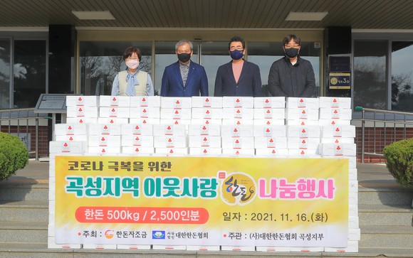 대한한돈협회 곡성군지부(지부장 이화섭)가 지난 11월 16일 이웃사랑 실천을 위해 돼지고기 500kg(250세트)를 곡성군에 기탁했다.