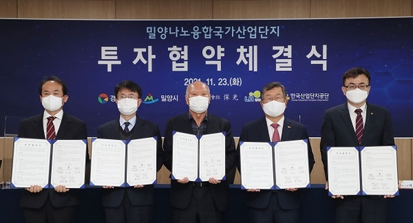 경남 밀양시는 23일 오전 10시 부북면에 위치한 밀양 나노융합 국가산업단지 LH 밀양사업단에서 기업투자 업무협약식을 가졌다.