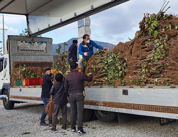 29일 군은 지역 내 90여 농가에 가시없는 음나무와 두릅 등 산나물 3만주를 보급했다고 밝혔다.