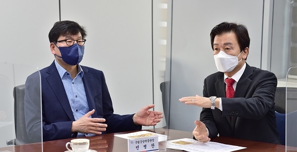 조규일 진주시장이 지난 3일 민병찬 국립중앙박물관장을 만나 국립진주박물관 이전과 관련한 사항을 논의했다.