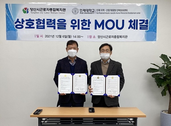 양산시 근로자종합복지관과 인제대학교 인력양성센터는 지난 6일 근로자종합복지관에서 두 대표가 참석한 가운데 양산지역 근로자 교육훈련에 대한 업무협약을 체결했다.