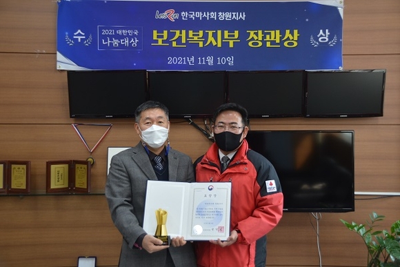 한국마사회 창원지사는 최근 보건복지부가 주최하고 KBS, 사회복지공동모금회가 공동주관한 '제10회 대한민국 나눔국민대상' 물적나눔에서 복지부장관 표창을 수상했다고 9일 밝혔다.