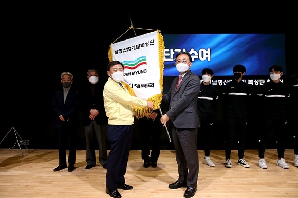 경남 김해시는 지난 13일 김해 남명N스퀘어 공연홀에서 '남명산업개발 복싱단' 창단식을 가졌다.