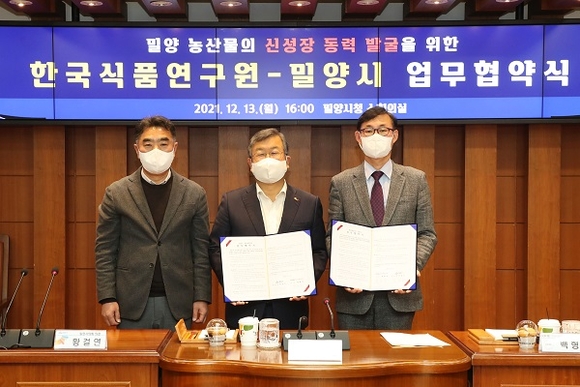경남 밀양시는 지난 13일 시청 소회의실에서 밀양시 농산물의 신성장동력 발굴과 활용을 위해 한국식품연구원과 업무협약을 체결했다.