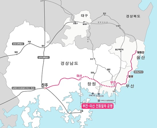 한편 부전~마산 복선전철사업은 지난해 3월 발생한 침하사고 복구공사가 현재 마무리 중이고, 내년 12월 말 KTX-이음이 90분 간격으로 개통·운행될 예정이다. 이와 함께 기존 무궁화 열차를 대체하는 급행열차(EMU-150) 도입을 위해 코레일 등 관계기관과 협의할 계획이다.
