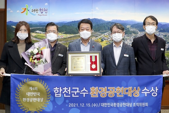이번 시상식은 (사)환경보전대응본부와 환경감시국민운동본부 주관으로 지구온난화방지와 환경보전에 기여한 개인이나 단체를 선정해 환경공헌대상을 수여하는 행사로 합천군수 등 5개 지자체장이 수상했다.