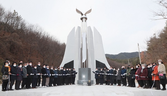 추모공원은 군비 5억원을 투자해 전체 3045㎡ 면적에 10.2m 높이의 위령탑 건립, 합동묘역의 비석, 정각 정비, 조경공사, 추모객 편의를 위한 파고라, 주차장 등으로 조성됐다.