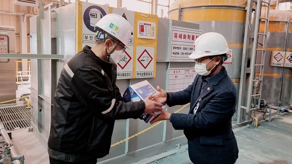 이호중 청장은 경영진과 대한항공 사내 게시판에 '동절기 화학안전 포스터'를 부착하고 유해화학물질 안전관리에 만전을 기해 줄 것을 당부하고, 유해화학물질을 취급하는 현장 관리자들에게 화학사고 예방 '홍보용 방역마스크'를 전달하고 격려했다.