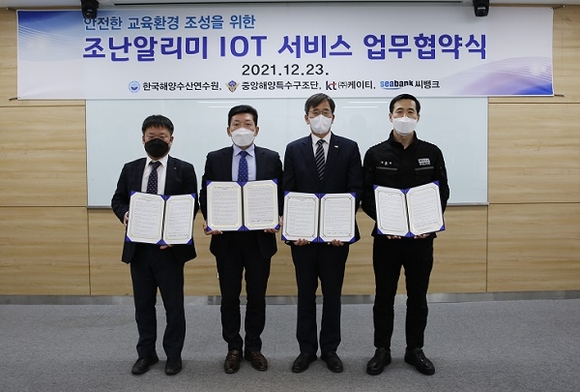 한국해양수산연수원은 지난 23일 실습선 안전확보와 현장실습 고교생의 안전관리 체계 강화를 위해 중앙해양특수구조단, ㈜케이티, ㈜씨뱅크와 함께 업무협약을 체결했다.
