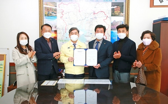 경남 사천시와 시 새마을회가 지난 24일 민관이 함께하는 플라스틱 FREE 시스템 구축을 위한 '2022년 아이스팩 순환 사업 업무협약'을 체결했다.
