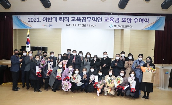 경남도교육청은 27일 오후 본청 공감홀에서 하반기 퇴직 교육공무직원 수상자와 가족, 동료 직원 등이 참석한 가운데 포상 수여식을 열었다.