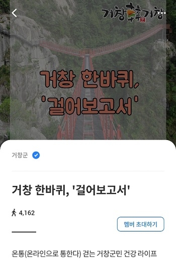 경남 거창군은 한 해 동안 추진한 비대면 걷기사업 '워크온' 참여자를 대상으로 4일간 실시한 온라인 만족도 조사에서 올해 최고의 비대면 건강증진사업으로 호평을 받는 등 만족도가 높은 것으로 평가됐다고 30일 밝혔다.