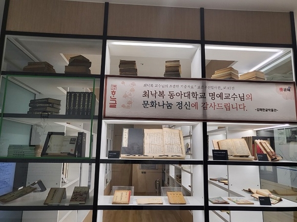 최 교수는 “평생을 한글을 연구해온 한글학자로서 조금이나마 한글문화 발전에 기여하고자 그동안 연구를 위해 수집해오던 희귀자료와 서적들을 기증한다”고 말했다.