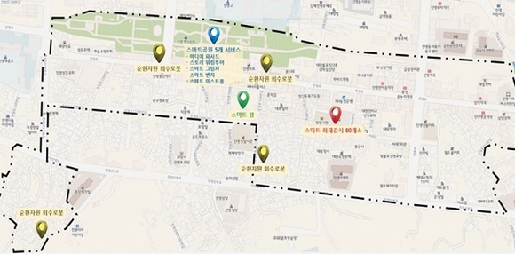 ▲인공지능 순환자원 회수로봇은 주민들이 많이 이용하는 공원 및 재래시장 인근 4개소에 인공지능 순환자원 회수로봇을 설치하여 실생활에서 배출되는 캔페트 등의 순환자원을 주민들이 직접 회수로봇을 통해 분리 배출함으로써 현금전환가능한 포인트로 적립함과 동시에, 나아가서는 지역의 클린 환경조성 확산과 순환자원에 대한 시민의식 개선으로 이어지게 할 계획이다.