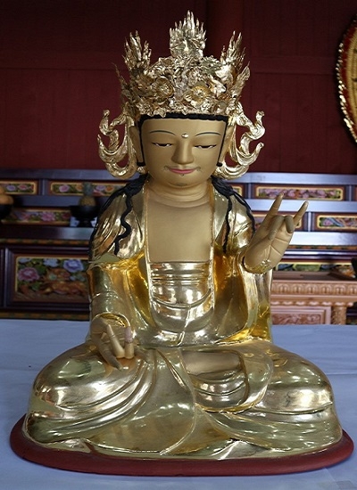 '창원 정법사 목조관음보살좌상'은 양산 통도사에 있던 것을 정법사 개창 후 이운한 것으로 가늘고 긴 상반신에 넓은 하반신의 신체 비례, 큼직한 코에 입꼬리가 올라간 큰 입술과 밝은 표정, 가늘고 길쭉한 손, 발끝을 덮어 아래로 흘러내리는 둥근 옷자락 등의 형태를 통해 17세기 후반에 조성된 것으로 추정되며 조선 후기 불상의 특징을 따르면서도 개성 있는 무염계(無染系) 조각승의 표현기법을 잘 보여주고 있다.