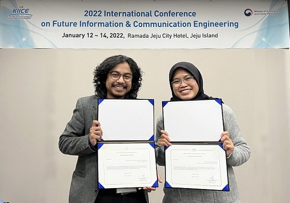 창원대학교는 정보통신공학과 대학원생 아리아 비스마 와휴타마(Aria Bisma Wahyutama·석사과정, 지도교수 황민태)씨와 리타 리자얀티(Rita Rijayanti·박사과정, 지도교수 황민태·진교홍)씨가 12~14일 열리는 'ICFICE2022 국제 학술대회'에서 동시에 우수 논문상을 수상(사진)했다고 13일 밝혔다.
