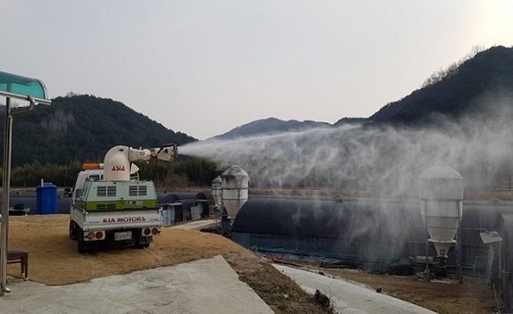 △공동방제단 활용 소규모 농가 소독 실시= 관내 방역이 취약한 소규모 1500여 농가에 대해 12개 공동방제단을 활용해 매월 2회씩(년 24회) 농가 방문 소독을 실시하고 있다.