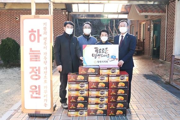 이치우 의장과 지역구 의원들은 이날 진해구 소재 장애인 거주시설인 '하늘정원'을 방문, 시설 외부에서 시설 관계자들을 격려하고 위문품을 전달하는 등 방역수칙을 준수하며 위문을 진행했다.