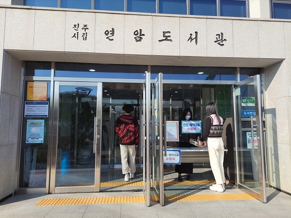 진주시립도서관은 코로나19 감염 예방을 위해 도서관 안으로 들어가지 않고 입구에서 책을 빌리고자 하는 시민들을 대상으로 '안심 예약대출 서비스'를 오는 24일부터 시행한다.