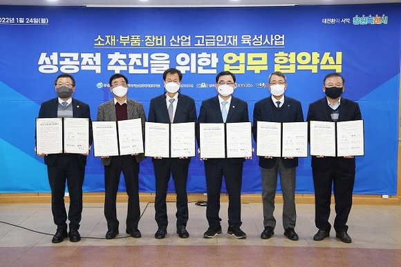 경남 창원시는 24일 오후 2시 제3회의실에서 소재·부품·장비 산업 경쟁력 강화를 위해 기술 고도화에 필요한 고급인재 육성사업을 도모하고자 산·학·연·관 업무협약을 체결했다.