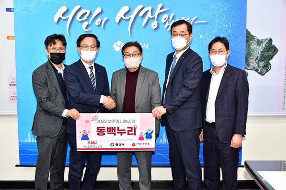 김일권 시장은 “BNK금융그룹에서 매년 명절마다 양산시에 후원을 해주셔서 감사하다”며 “전달 받은 상품권은 도움의 손길이 필요한 이웃들에게 소중히 잘 전달하겠다”고 말했다.