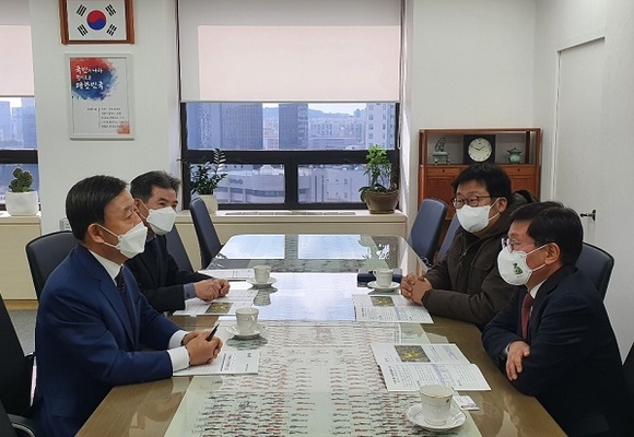 산림청 방문에서는 ▲국립 김해숲체원 조성(200억원 증액) ▲국립 용지봉 자연휴양림 조성(100억원 증액) ▲국립 치유의 숲 조성(50억원) ▲그린뉴딜 네트워크 사업(50억원) ▲도시 바람길숲 조성(90억원) 등 5개 현안사업에 국비 490억원 지원을 건의했다.