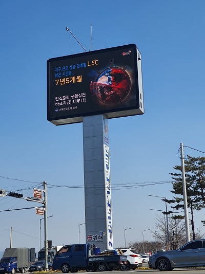 현재 지구 평균온도 1.5℃ 상승까지 남은 시간은 7년 5개월로 시는 매월 변동되는 기후위기 시간을 김해 관문인 동김해·서김해IC, 유동인구가 많은 김해시보건소에 설치된 3개 전광판에서 송출한다.
