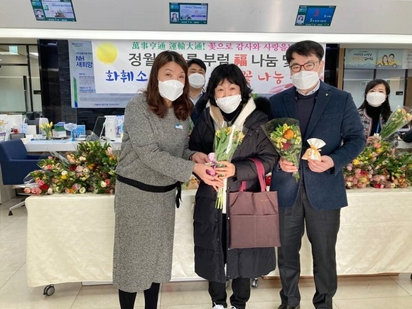 NH농협 창원시지부는 지난 15일 최근 코로나19 장기화로 어려움이 겪고 있는 지역 화훼농가를 응원하기 위해 내방고객을 대상으로 꽃 나눔 행사와 정월대보름을 맞아 행복기원 부럼 福나눔 행사도 병행했다.
