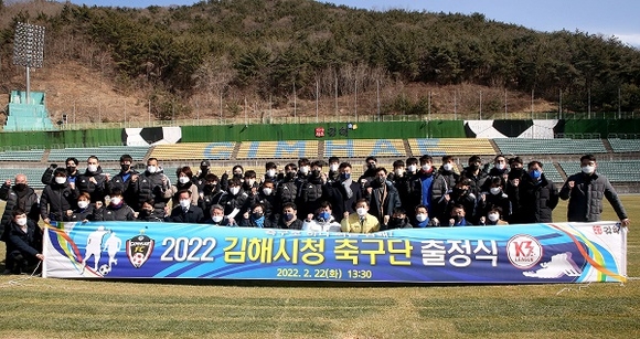 경남 김해시는 22일 김해운동장에서 2022년 K3리그 선전을 다짐하기 위한 '김해시청 축구단 출정식'을 가졌다.