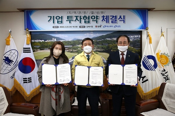 김해시와 (유)에스제이, ㈜삼정은 23일 시청에서 '김해 한림면 온천 웰니스 단지 조성을 위한 투자양해각서'를 체결하고 본격 개발에 나서기로 했다.