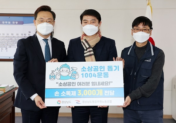이날 도청공무원노조에서 기증한 손 소독제 3천 개는 경남도소상공인연합회를 통해 지역 소상공인에게 전달된다.